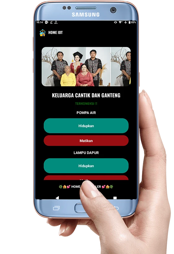 yang memungkinkan kontrol perangkat rumah tangga seperti pompa air dan lampu